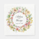 This luncheon napkin coordinates with all the items in our Mountain Meadow Wildflowers Collection. The design features two concentric circles of watercolor fresh mountain meadow wildflowers and foliage. The names of the bride and groom and the wedding date are in the centre.