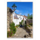 Watercolor Mediterranean village with white houses and colourful flowers in Portugal