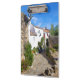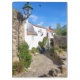 Watercolor Mediterranean village with white houses and colourful flowers in Portugal