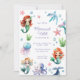 Under the sea birthday invitation for baby mermaid kids. Colourful, watercolor adorable and fun illustrations for your little one's birthday party featuring cute water bubbles, sea star fish, dolphins, whale and mermaid tails, algae, octopus and jellyfish. This design is fully customizable and comes with matching party supplies in our Watercolor Mermaid Birthday Collection.