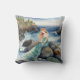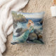 Watercolor Mermaid On Ocean Rocks Throw Pillow