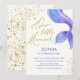 Watercolor Mermaid Tail Gold Glitter Birthday Party Invitation.