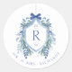 Watercolor Mistletoe Crest Monogram Classic Round Sticker