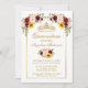Modern Elegant Quinceanera Mixed Floral Gold Frame Invitation Card includes burgundy roses, red roses, pink roses, sunflowers and botanical greenery.