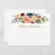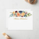 Modern Elegant Watercolor Floral and Greenery Personalized Note Card includes golden yellow, peach, blue and burgundy flowers and roses, botanical greenery and gold script.