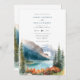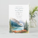 Watercolor destination spring/ summer time mountain wedding invitation featuring Majestic mountains pine trees and wildflowers.
