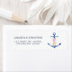 Trendy navy and white nautical theme wedding address labels featuring a blue watercolor floral anchor.