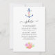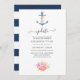 Trendy navy and white nautical postponed wedding announcement featuring a watercolor floral anchor, flowers and navy stripes on the reverse.