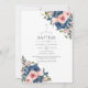 Trendy blush pink and navy blue floral baptism party invite customizable to your event specifics.