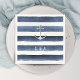 Watercolor stripes in dark navy blue with silver anchor design, simple and chic, great paper napkins for beach wedding, nautical theme wedding, destination wedding, summer wedding party and coastal living decor.