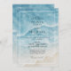 This elegant watercolor beach wedding invitation features classic timeless text over an abstract ocean waves scene in the background.