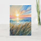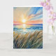 Pretty watercolor sunrise over the ocean horizon with beach grass for sympathy.