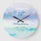 Watercolor Ocean Waves Modern Wedding Anniversary Large Clock