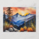 Pretty beautiful fine art Watercolor painting of sunrise over snow covered mountains