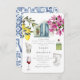 Watercolor Olive Blue tile Greece Wedding Invitation