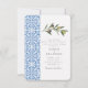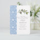 Watercolor Olive Blue tile Mediterranean Wedding Invitation