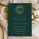Watercolor Olive Wreath Emerald Green Gold Wedding Invitation