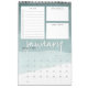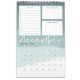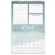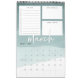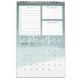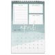 Unique 12 page monthly calendar features a calendar grid beneath three customizable sections to help organize your month, including a lined to-do list with checkboxes, a section for "big goals" and a notekeeping section. Each page features a sheer watercolor gradient background in soothing shades of jade green, with the month in white handwritten lettering. Personalize the front cover with the year and your custom text to make this beautiful 2019 calendar your own.