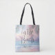 Celebrate your seaside wedding with this double-sided tote bag featuring a soft pastel sunset watercolor design over the ocean. Warm sunset tones blend beautifully as gentle waves meet the shore, while subtle palm leaf accents add a tropical, airy feel that’s both relaxed and romantic.