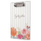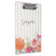 Watercolor Orange Peonies Pinstripes Custom Clipboard. Colourful and whimsical clipboard featuring orange and pink watercolor with pinstripes pattern. This will be a perfect feminine accent for your office.