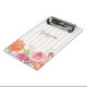 Watercolor Orange Peonies Pinstripes Personalized Mini Clipboard