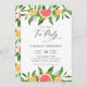 Invite family and friends to your bridal shower with this summer tea party invitation. It features watercolor illustrations of grapefruits, oranges, floral blossoms and greenery. This citrus invitation will be perfect for summer events. Personalize by adding your event details.