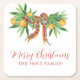 Watercolor Oranges Plaid Bow Christmas Square Paper Coaster