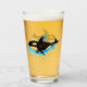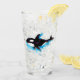 traditional watercolor artwork of a black and white orca or killer whale on a drinking glass