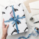 This wrapping paper features a tiled image of a watercolor of an orca whale, or killer whale.