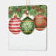 Send a classic, festive greeting with this gorgeous Watercolor Ornaments and Pine Boughs Card. The design features three unique, richly patterned baubles: a red and white striped ornament, a green scrolling pattern ornament, and a red and gold holly ornament. They are beautifully suspended from vibrant pine needles and red berries, giving the illustration a full, traditional, and abundant look. The hand-painted watercolor aesthetic provides a warm, artistic, and vintage holiday feel. This card is a perfect choice for sending traditional family greetings or a sophisticated holiday message to friends.