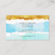 Modern Watercolor & Paint Strokes with blue and gold Interior Designer business cards.