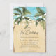 Modern any age palm tree birthday invitation featuring a modern calligraphy heading, some watercolor palm trees, beach and fairy-lights. This modern 21st birthday invitation is ideal for a summer birthday party.