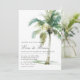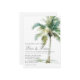 We used a beautiful watercolor illustration of a palm tree for this elegant and classy wedding invitation. Green will match many wedding themes and is a wonderful neutral colour, unexpectedly eye catching in this hand painted palm tree art.