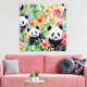 Cool Watercolor Scenery Style Painting Panda Bear In Colourful Flower Garden.