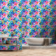 A seamless pattern featuring Hawaiian flowers like hibiscus, birds of paradise, and orchids in a vibrant watercolor style. The design captures the lush and exotic beauty of tropical flora with rich, vivid colours and artistic fluidity