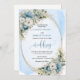 Set the tone for an unforgettable celebration with this elegant watercolor wedding invitation, beautifully designed with dusty blue florals, soft white peonies, and delicate eucalyptus