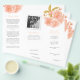 Tri-fold 6 page peach coral orange coloured blossom watercolor art on a white background wedding program. Part of the peach spring double cherry blossom flowers watercolor wedding collection. Edit these wedding programs with your own name, dates and ceremony wording and add two of your own photos. Pretty floral program simply replace sample text with your own wedding information details and the template photos with your own. Modern and romantic wedding ceremony program. This are a budget program so you will need to folded them as these are not pre-folded. Other thicker stock and deluxe creased options are also available. © Original painting and design by Sarah Trett for only www.mylittleedenweddings.com on Zazzle.