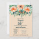 Elegant watercolor of flowers in shades of peach to orange trimmed with teal to jade green foliage and ANY AGE birthday details in chic teal lettering. MATCHING items in our store.
