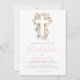 Watercolor Peach Floral Cross Baby Dedication Invitation