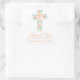 Watercolor Peach Mint Flower Cross First Communion Square Sticker