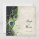 Watercolor Peacock Feather Black Damask Invite