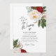 Beautiful watercolor floral bouquet in rich reds and whites, includes gorgeous peonies, lilies, lush greenery and baby's breath. The bouquet is set over a white background, with a matching canvas on the back. This design is finished with simple elegant black calligraphy script.