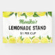 Cute watercolor bright lemonade stand banner featuring watercolor yellow lemons and greenery. Easy to personalize with your child's name.
