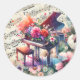 Watercolor Piano and Flowers Classic Round Sticker