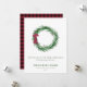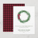 Watercolor Pine and Pine Cones Christmas Holiday Card - A lovely rustic pine wreath adorned with pine cones and a burgundy red bow is featured on our rustic holiday card. The back of the Christmas card coordinating buffalo plaid. Card is part of a collection.