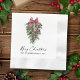 Modern Elegant Calligraphy Ink Script Watercolor Pines Winter Greenery with Burgundy Red Ribbon Bow Christmas Ornaments, Pine Cones and Holly Berries Merry Christmas Cocktail Paper Napkins