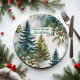 Watercolor Pine Pattern Elegant Winter Paper Plate