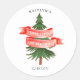 Watercolor Pine Tree Merry Little Birthday Classic Round Sticker
