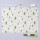 Watercolor pine trees, an adorable deer, holly and a few red berries, all on a white background. Stylish and simply wonderful.