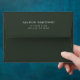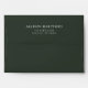 This customizable envelope features a forest green envelope white typography. Open the envelope to find beautiful watercolor pine trees inside.
